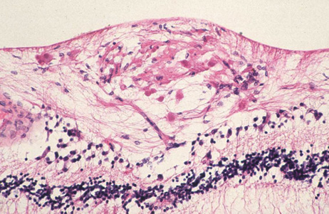 as tuberculosis, syphilis,61 polyarteritis nodosa, and Takayasu's disease. The ocular manifestations of aortic arch disease depend upon the underlying condition, the site of occlusion, and the pattern of blood flow. Widening of the aortic arch, as seen in tertiary syphilis, may be associated with aortic valve insufficiency and may produce ocular manifestations of valvular disease, such as calcific emboli and endocarditis. Retinal arteriovenous crossing changes, widening of the arterial light reflex, and arterial narrowing are seen in atherosclerosis and polyarteritis nodosa. Signs of ocular ischemia and hypoperfusion may be seen in aortic arch syndrome. At an early stage, venous dilation, venous beading, cotton wool spots, and microaneurysms may occur. Retinal artery pressures are uniformly low in patients whose circulation is reduced enough to cause ocular signs and symptoms. Peripheral retinal hemorrhages followed by nonperfusion of the peripheral retina often precede the development of retinal neovascularization. Neovascularization of the iris with resultant neovascular glaucoma is a potentially devastating complication of hypotensive oculopathy.62 Signs of ocular inflammation, such as vascular injection, flare in the anterior chamber, and cataract formation, are also seen in the later stages of this disease. Takayasu's disease (also known as pulseless disease) is a chronic granulomatous vasculitis of the large arteries that causes narrowing and occlusion of the major branches of the aorta, including the carotid arteries. This condition typically occurs in young women, and it may be associated with scleritis or iritis.63 It also may cause hypotensive retinopathy that has been divided into four stages: stage 1, dilation retinal vessels; stage 2, microaneurysm formation; stage 3, arteriovenous anastomosis; and stage 4, blinding complications as a result of profound ocular ischemia, including retinal detachment, vitreous hemorrhage, neovascular glaucoma, optic atrophy,64 and cataract.65 |