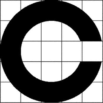 1888. Edmund Landolt had worked with Snellen in Utrecht and later became a professor of ophthalmology in Paris. In 1874 Snellen and Landolt had cooperated in publishing a major chapter on “optometrology,”21 the science of measuring vision. They recognized that not all of Snellen's optotypes were equally recognizable. This led Landolt to propose the broken ring symbol (1888), a symbol that has only one element of detail and varies only in its orientation.22 Landolt's Cs (Fig. 6) would become the preferred visual acuity measurement symbol for laboratory experiments but gained only limited acceptance in clinical use.