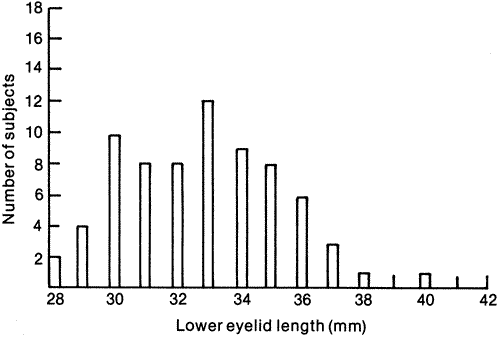 into something that they can picture. The distribution may be thought of as a picture or map of the data. Figures 1 and 2 show distributions for common ophthalmologic variables. The way to illustrate a distribution