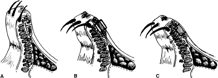 A few cases have been reported in which the tarsus is folded in a horizontal condition creating a severe congenital entropion referred to as tarsal kink.69,70 This is felt to be a congenital developmental anomaly. It can be repaired during infancy by making a horizontal conjunctival and tarsal incision at the point of its folding. |