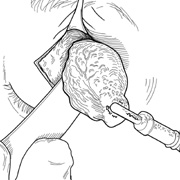 | The ability to modify the surgical plan intraoperatively is necessary in orbital surgery. Inadequate exposure may be improved by extending the surgical incision or by more aggressive soft-tissue and periosteal elevation. Unexpected difficulties in exposing or making a safe biopsy of an orbital mass may require the use of combined surgical approaches, such as the addition of lateral orbitotomy, to a planned medial orbitotomy. Larger orbital procedures involving tumors that extend outside the orbit require a team approach in cooperation with surgeons from other disciplines. In these cases, as well as all orbital procedures, preoperative contingency plans for intraoperative modifications will make the orbitotomy more successful. In all types of surgery, the ability to modify the initial plan becomes easier with experience. |