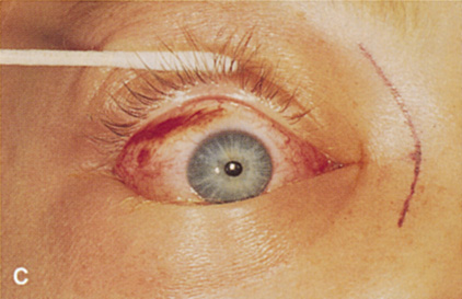 beneath the tarsal plate (Fig. 30). With any of these approaches, dissection can be carried inferiorly