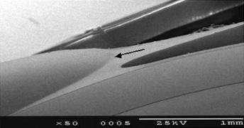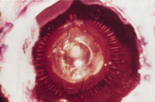 In rabbit studies completed at Dr. Apple's laboratory, it was noted that the 570C model with the discontinuous “enhanced edge” provided the best barrier effect against cell migration/proliferation and PCO formation.65 Analyses of the scanning electron photomicrographs demonstrate this model's complete ridge or “enhanced edge” extending for 360 degrees around the lens optic (Fig. 38). It is this enhanced-edge model 570C that is undergoing FDA trial with the hope that epithelial cell growth has in fact been seen to be stopped at the edge at the optic-haptic junction. In summary, over the past few years the faulty hydrophilic designs have been largely weeded from the market, and more recent experiences such as noted with the Rayner design have altered our negative thinking about this category. As time has passed, several advantages of these materials have been established that support their continued usage. Blanket condemnation of these materials is unwarranted, and excellent lens design fabricated from well-formulated hydrophilic materials are now available. To repeat and emphasize once more: Mistakes or missteps by individual manufacturers should not have resulted in a condemnation of this category as a whole, which has unfortunately happened. The tide has now turned, and vastly improved hydrophilic IOLs have now emerged that warrant serious consideration by surgeons and manufacturers. We believe that hydrophilic lenses have a useful place in the armamentarium of surgeons for the future for several reasons, including both medical reasons and financial/logistical reasons. |