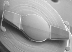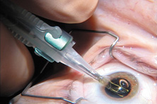The IMT™ is implanted in one eye to improve central vision, whereas the other eye remains as is to continue to provide peripheral vision. This is designed to improve activities of daily living, and reading may be accomplished with standard spectacles to bring the enlarged retinal image into focus. A patient with an IMT™ should be able to scan the field of view for reading and distance visual activities through natural eye movements, because the device is placed entirely in the eye. In Alio et al's study, patients had significantly better visual acuity with the device after surgery. A total of 14 of 36 eyes had adverse effects including three with patient dissatisfaction requiring exchange and implantation of a PC IOL, two with air bubbles in the telescope, one with diplopia, and several with iris or zonule damage.163 Another model of the telescope is being specially modified for patients who are pseudophakic. |