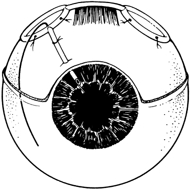 suture inferonasally. The exposed suture end is grasped with a forceps