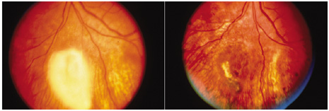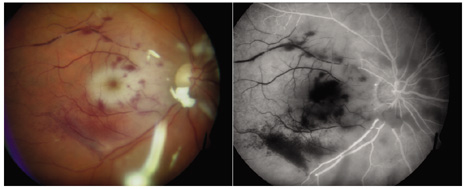 edema, marked conjunctival congestion, lid edema, and vitritis. Retinal