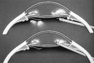 lost lens material anteriorly can cause retinal tears and bleeding. Cortical material is typically easier to manage and smaller in nature than nuclear material when lost. Small cortical particles that are lost posteriorly during the irrigation and aspiration phase can generally be left in place although the patient must be monitored for an inflammatory reaction and development of cystoid mocular edema (CME). Impending loss of larger cortical fragments can sometimes be prevented by injection of viscoelastic material under the fragment to inhibit posterior dislocation. This allows not only lenticular support, but also displaces the vitreous posteriorly to allow safe removal of the lens material with minimal vireo-retinal traction. Additionally, decreasing the irrigation rate maybe helpful in reducing hydration of the vitreous and minimize prolapse of the vitreous into the anterior chamber and posterior migration of lens particles. Management of dislocated nuclear lens material or, more typically, the lens in toto is much more difficult. Major loss of nuclear material or the entire lens occurs early in the procedure from either loss of a continuous curvilinear capsularrhexis with posterior capsular rupture or zonular dehiscence. Commonly, the anterior segment surgeon has little time to stabilize the larger lens piece as it sinks posteriorly out of view. Unfortunately, nuclear material in the vitreous cavity is associated with an increased risk of inflammation, glaucoma, and corneal decompensation. If the nuclear material is still within the iris or lens capsular plane, stabilization with a combination of a viscoelastic and a secondary instrument inserted underneath the particle can allow enough time to prevent posterior dislocation. Occasionally, the lens can then be lifted and placed in the peripheral anterior chamber angle, allowing time to make a limbal incision to remove the larger lens fragment. Care must be taken to facilitate a complete vitreous removal from the anterior chamber and entry incision wound. Typically, the vitreous cutter can be inserted safely to just below the iris plane to faciliate vitreous clean up and reduce the risk of vitreoretinal traction during intraocular lens insertion. If enough capsular support remains, placement of the intraocular lens in the bag or sulcus is desirable. Otherwise, placement of anterior chamber intraocular lens may be elected. Although, there is evidence that final visual acuity with posterior chamber lenses may be slightly better statistically than with anterior chamber lenses.6–9 If lens material is lost below the iris/lens plane, aggressive retrieval is not advisable. Attempts to aspirate lens material with the phacoemulsification tip in the vitreous cavity is not recommend and is fraught with complications.10 If one has immediate access to a vitreoretinal surgeon, pars plana retrieval at the time of the complication may be possible.3,9 Some authors have advocated a pars plana approach by the cataract surgeon to stabilize dislocated nuclear material with either a secondary instrument or viscoelastic material.11 Unfortunately, many anterior segment surgeons may not have extensive training in pars plana manipulation and its potential complications. Additionally, despite promising reports, case series are still small, and it is difficult to determine if aggressive retrieval of lens material through a pars plana approach by a anterior segment surgeon should be recommended at this time. A preferred approach would be to place the intraocular lens if possible, remove those particles readily accessible, and then close the eye. In those circumstances where there is a vitreoretinal surgeon readily available and the operating room is suitability equipped, definitive removal of dislocated lens material can be accomplished. However, in most instances it is best to discuss the problem with the patient and refer the patient the next day for further evaluation. We recommend that at the conclusion of a complicated cataract surgery a subconjunctival injection of a short-acting steroid to minimize the inflammatory response and cystoid macular edema. Frequent postoperative topical steroids, antibiotics, and cycloplegics should be initiated. |