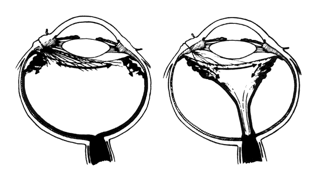 of the lens, vitreous hemorrhage, and retinal detachment caused