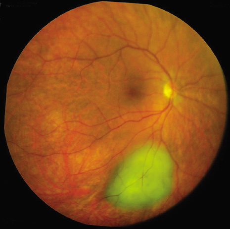 nevus.13 Choroidal nevi are managed by periodic observation. It is estimated that 1 in 5,000 choroidal