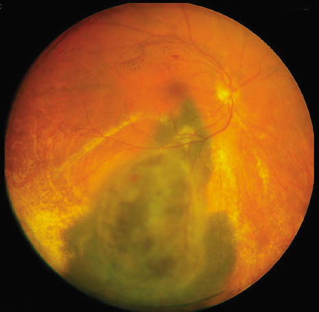 even large uveal melanoma up to approximately 12 mm in thickness (Fig. 3). 34 Shields and co-workers found that plaque radiotherapy for large melanoma