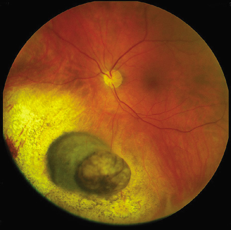 are located in the extramacular region, not touching the optic disc (Fig. 2). Tumors at the optic disc show greater recurrence and are best managed