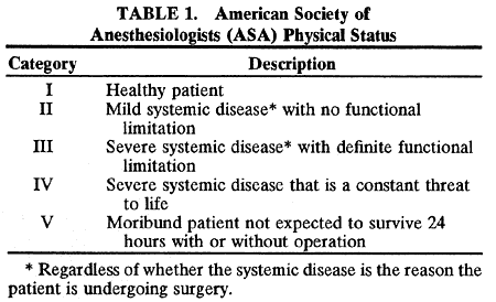 | PREOPERATIVE EVALUATION ASA CLASSIFICATION |