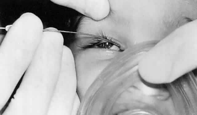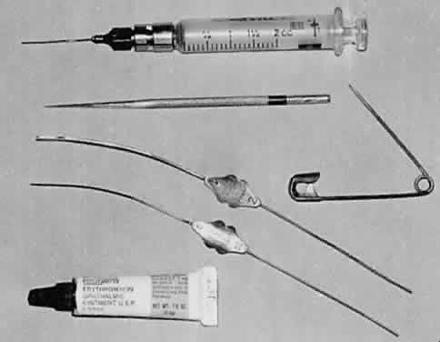 EXPECTED RESULTS If the lacrimal drainage system remains open after the silicone tube has been withdrawn, tearing and discharge will disappear. Persistence of symptoms of obstruction suggests that a dacryocystorhinostomy is necessary. COMPLICATIONS Erosion of the canaliculi may occur if the tubing is tied too tightly or is left in place too long. Evidence of erosion should prompt consideration of tube removal. Rarely, the tube or a portion of it may be lost in the lacrimal sac, and it may be necessary to explore the sac to remove the lost portion. |