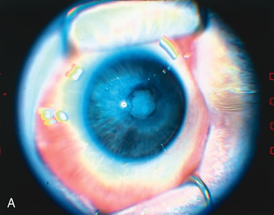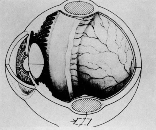 Cryotherapy done during a scleral buckling procedure carries the risks of complications mentioned earlier. Because of the risk of corneal clouding and central retinal artery occlusion, prolonged depression during cryotherapy should be avoided. Perforation of the thin infant globe can occur while a scleral bed is being prepared and while sutures are passed to secure the buckling element. Dissection of scleral beds is a technically difficult procedure that should be attempted only by highly experienced surgeons. Similarly, great care should be taken when passing sutures through the sclera. If perforation occurs during passage of a suture, the suture should be removed and replaced so that the buckling element will cover the perforation. Indirect ophthalmoscopy should be done immediately to determine whether there has been retinal damage. If the retina became detached in the area of perforation, fortuitous drainage may occur. If retinal perforation has occurred, cryotherapy should be applied. A decision to drain subretinal fluid should be made carefully because the risks are significant. If there is only shallow fluid, and if the buckle provides adequate height, drainage may not be necessary. The risks of drainage are perforation, incarceration, hemorrhage, and infection. Choosing a drainage site over bullous retina can minimize the risk of perforation. If perforation occurs, it should be managed by buckling and cryotherapy, as mentioned earlier. Drainage under the buckle obviates the need to add an additional buckling element over a perforation at a drainage site. Incarceration is less likely with tractional retinal detachment than with the rhegmatogenous variety because the retina is pulled inward by tractional forces. Nonetheless, if incarceration occurs, it should be treated with cryotherapy and buckled. Diathermizing the choroid prior to drainage will decrease the risk of hemorrhage. Once the globe is entered, the possibility of intraocular infection increases. Endophthalmitis after scleral buckling is rare. It should be managed with standard techniques, including injection of intravitreal antibiotics. Careful attention to the intraocular pressure at the end of the procedure is important. If the pressure is too high, central retinal artery occlusion may occur. As mentioned earlier, the pressure should be normalized, and the central retinal artery checked for the desired absence of pulsations. In the small infant eye, the buckle may induce angle-closure glaucoma in the postoperative period. The cornea should be assessed for clarity, and the intraocular pressure can be checked with an electronic tonometer. If angle-closure glaucoma develops, the scleral buckle must be loosened. A tight buckle also may induce anterior segment necrosis. This condition is manifested by corneal edema without high intraocular pressure, chemosis, and a cellular reaction in the anterior chamber. The buckle should be loosened or removed. Scleral buckle infection is manifested by conjunctivitis overlying the buckle and a clear cornea in mild cases. Intraocular inflammation is seen in more severe cases. This condition is managed by removal of the buckle and antibiotics. Extrusion of the scleral buckle as a result of release of the sutures is managed by resecuring the buckle, or removal of the buckle, if it is no longer necessary. Although not technically a complication, persistent detachment of the retina is an unsatisfactory result. Nonattachment may be due to the disease process itself (persistent or progressive tractional detachment), or it may be due to a loose buckle. If the height of the buckle seems inadequate, revision of the scleral buckling procedure should be done. As mentioned earlier, the scleral buckle may cause erosion or may interfere with growth of the eye as the infant matures. The scleral buckle should be transected or removed after 6 to 12 months to promote normal eye growth. |