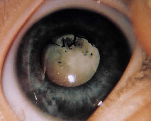 Cefazolin (0.2 ml of 50-mg/ml concentration) should be injected under the conjunctiva at the end of the surgical procedure. Aminoglycosides should be avoided because of the risk of retinal toxicity.6 Subconjunctival injection of corticosteroids should be avoided until the surgeon is certain that no infection is present. Atropine ointment (0.5% for children younger than age 1 year and 1% for children older than 1 year) should be placed to ensure maximal cycloplegia. POSTOPERATIVE MANAGEMENT Control of postoperative inflammation with restoration of vision in the pediatric age range is critical. Many successful procedures have been performed but have resulted in poor vision because of irregular astigmatism and secondary amblyopia. In visually immature children (younger than 8 years old), plans must be made for visual rehabilitation as soon as the situation permits. This includes the use of contact lenses, patching of the normal eye, and a possible keratoplasty procedure to clear the pupillary space.7 Patching the injured eye for more than 24 hours following injury should also be avoided to prevent the risk of iatrogenic amblyopia. Corticosteroids, both topical and systemic, can be used early in the course of treatment. Treating severe inflammation and returning the child to a comfortable condition is paramount. Children seem to heal much sooner than adults. It has been our experience that corneal sutures can be removed as early as 2 to 4 weeks after trauma. One should monitor signs of healing, such as suture loosening and early vascularization along the corneal wound. Clearing the visual axis and correcting any abnormal refractive errors are essential for a good visual outcome. |