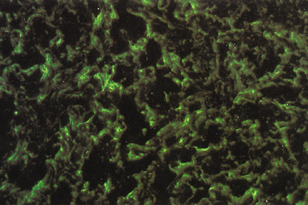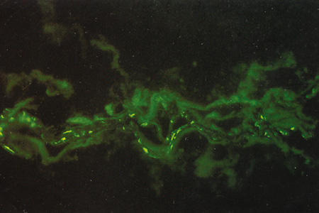 perforating injury. Immunohistochemical studies on human adult sclera show that the adult extravascular sclera contains the collagens type I, III, V, VI, and VIII (Fig. 15), the glycosaminoglycans dermatan sufate and chondroitin sulfate with small amounts of hyaluronic acid and heparan sulfate, and the glycoproteins fibronectin and vitronectin.9 Scleral blood vessels have the collagens type IV, V, and VI, the glycosaminoglycans heparan sulfate and chondroitin sulfate (Fig. 16), and the glycoproteins fibronectin and laminin.