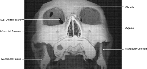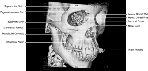 TECHNIQUE AND THEORY The discovery of x-rays in 1895 by Roentgen ushered in the age of diagnostic imaging. The basis for the images created by x-rays is the differential absorption of such rays by various tissue structures. This is based on the fact that atoms with higher atomic numbers and greater electron density will absorb and attenuate more of these rays than those with lower atomic numbers. Therefore, for an image to be created by any x-ray imaging device, the minimal requirements include an emitter to produce x-ray energy and a detector to measure the amount of this energy transmitted through a particular structure. It was not until the 1970s, however, that a major advance was made in this area with the development of CT by EMI Ltd. of England. Since the installation of the first CT scanner in 1971, there have been four further generations of scanners that have resulted in improved spatial resolution and decreased scanning time. In standard plain film radiography, images are produced by the exposure of a film source to x-rays transmitted through an object of study. Both the film and the radiation source are perpendicular to the object to be studied. To delineate more exactly a single plane of view, plain film tomography developed as a next step. With the use of this technique, both the radiation source and the film source are moved in synchronicity while the object to be imaged remains stationary. This enables a specific target plane to be in clear view while adjacent planes are blurred. The development of CT represented a dramatic and significant improvement over plain film tomography. Although it also uses x-rays in an attempt to image clearly a specific object plane, its conceptual basis and methodology are markedly different. In this imaging technique a rotating radiation source is used to transmit x-rays rapidly through an object from a number of angles, usually in 1-degree increments. At the same time a rotating radiation detector array is used to measure the x-ray attenuation by a given cross section of intervening material. The data are then digitized and analyzed using various algorithms to permit gray-scale image reconstruction representing the attenuation coefficients of the imaged tissue. The algorithmic computation is simplified by using data collected from one two-dimensional (2D) slice at a time and by calculating the attenuation of many small volumes or voxels of this slice (volume averaging) instead of using data from the many points in one large volume. Image resolution is improved by reducing both the volume of a single voxel and the thickness of the individual tissue cross section through which radiation is transmitted. The unit representing the extent to which a particular voxel attenuates the x-rays is termed the Hounsfield unit (HU). The HU varies from a value of -1,000, or minimal attenuation as represented by air, to + 3,000, or maximal attenuation as represented by bone, with zero being equal to the attenuation of x-rays by a voxel of water. In gray-scale terms, the lighter the area imaged, the greater is the absorption of x-rays; the darker the area imaged, the less is the absorption of x-rays. More recently, evolution in CT software has permitted the creation of high-resolution 3D images (Fig. 1).8 This has been of particular interest in cases of traumatic and congenital bony defects of the skull, where such images are quite useful in planning reconstructive efforts. With additional mathematical manipulation of the attenuation coefficients obtained from cross-sectional 2D slices, 3D images can be reconstructed. This is accomplished by estimating the interstice voxel HU values. These are generally assumed to be a weighted average of the HU values for the voxels of the two adjacent slices. The locations of the voxels are then described in terms of a 3D coordinate system with the z-axis parallel to the CT scanner table, the y-axis perpendicular to the top of the table, and the x-axis parallel to the CT scanner gantry opening. These images can then be reconstructed in either gray-scale or false color and recorded on film or tape.