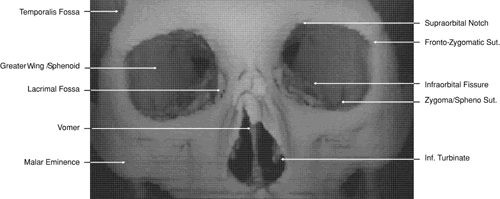 vast majority of significant structures related to the eye, orbit, cranial