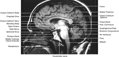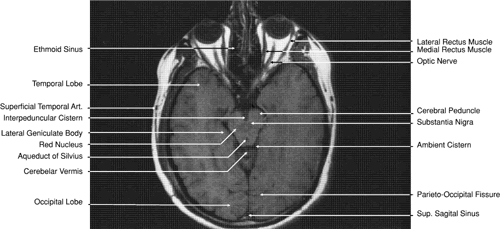 nerves, and visual pathways can be seen by both MRI and
