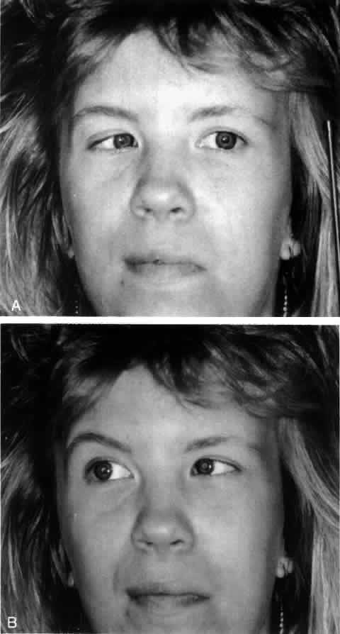 In summary, typical children with FAS are small, mildly mentally retarded, and hyperactive. They have microcephalus and a characteristic face with short palpebral fissures, a broad flat bridge of the nose, a small upturned nose, and a long upper lip with a flat philtrum. The most common ocular findings are esotropia, impaired vision, optic nerve hypoplasia, and tortuous retinal arteries.130 Mental retardation is a cardinal feature of FAS, and FAS is now considered to be the leading cause of mental retardation in the Western world.131 Typical ocular anomalies in FAS may be found in at least 10% of children with mental retardation.132 FAS was originally described in France, a country with a high alcohol consumption, and has since been recognized in many countries, such as Chile,133 Hungary,134,135 Germany,136–138 and Ireland.127,139 The incidence in France is about one in 700 newborns,140 similar to that in Sweden where one in 300 live births may show some alcohol-related defects, and approximately one in 600 have complete manifestations of the syndrome.141 In the United States the incidence is between one in 322142 and one in 750.143 The highest incidence has been noted among American Indians. May and colleagues144 reported rates ranging from one in 100 to one in 750 live births among various Indian tribes in the southwestern United States. The prevalence of alcohol fetopathy among children in an Indian community in British Columbia was estimated to be 190 in 1000 children up to 18 years of age; 64% of the children were mentally retarded.145 FAS is characterized by physical and behavioral disabilities. Mothers may not be “alcoholics” in the stereotypical sense but have abused alcohol during at least part of the pregnancy, Recent reports also have shown cognitive and behavioral deficits in children born to “social drinkers.”146 Approximately one third of the children born to alcoholic mothers have the full FAS.118,137 The nature and extent of damage to the fetus depends on many factors, including the time periods during pregnancy when the woman drank, the amount of alcohol intake, and biologic and genetic features of the fetus and mother. The sooner a woman stops drinking, the better her baby's outcome will be. A mother with one affected child will have children without FAS if she does not drink during subsequent pregnancies. Many women drink alcohol and smoke, a combination that may affect their children adversely.147 The role of malnutrition also is difficult to sort out, as is the use of drugs. Comparative studies involving animals and humans indicate that there is a risk for defects of ocular structures from as early as the third week after fertilization until development is completed. Drugs THALIDOMIDE. Thalidomide was independently synthesized in Germany, Great Britain, and Japan in the mid 1950s. It was marketed as effective therapy for insomnia, anxiety neurosis, and nausea during pregnancy without acute toxic effects even in high doses. As a result, consumption rose rapidly. Complications, such as neurologic symptoms, were soon observed, which prevented its introduction in the United States. In 1960 an unusual kind of severe limb deformities occurred in epidemic proportions. Children were born with amelia and various degrees of phocomelia affecting the upper and lower extremities. Some of the children also had congenital heart disease; ocular, intestinal, and renal anomalies; and deformities of the external ears.148–152 The German pediatrician Lenz became suspicious that thalidomide was the cause of the anomalies. In November 1961 he warned, “From a scientific point of view it seems premature to discuss it. But as a human being and as a citizen, I cannot remain silent about my observations.”152a The drug was withdrawn from the market in late 1961 but remained on the market in Japan until September 1962. Lenz compared the frequency of affected births and the amounts of thalidomide sold each quarter in West Germany and showed that frequency was correlated very closely with thalidomide sales 9 months earlier (Fig. 9). Approximately 5000 children were affected in Germany and 700 each in Japan and Great Britain. Another 26 countries reported cases of thalidomide embryopathy.153 It was estimated that approximately one third of the children died in early infancy because of major defects of vital organs. A detailed analysis of the Japanese cases was published in 1987.154 Based on careful interviews with the mothers about the ingestion of thalidomide, the sensitive period for the teratogenicity of thalidomide was determined12,13 to be from approximately days 20 to 36 after conception (days 35 to 50 after the first day of the last menstrual period) (see Fig. 3). Ocular malformations, such as microphthalmos, coloboma of the iris and uvea, lens attachment to the cornea, optic disc anomalies, paralysis of the sixth and seventh cranial nerves, strabismus, and nystagmus, also were reported.155–161 Recently, a study of Swedes with thalidomide embryopathy revealed that half of the patients had ocular motility disturbances, most often consisting of incomitant strabismus; Duane's syndrome also occurred frequently (Fig. 10A and B ).162,163 Facial palsy (Fig. 11) and abnormal lacrimation were associated with the ocular motility disturbances. A few cases of microphthalmia and coloboma also were noted. Many of the affected patients had shorter or longer than normal axial length, high refractive errors, and corneal astigmatism.164