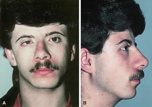 The clinical spectrum of hemifacial microsomia is highly variable with only slight microtia and asymmetric mandible at the least severe end of the spectrum. Severely affected patients may present with absence of the ear, lateral orofacial clefts (Tessier's cleft 7), orbital dystopia and hypoplasia, mandibular dysplasia, and corresponding cleft tissue abnormalities. Although this condition is predominantly unilateral, 10% of cases may be asymmetrically bilateral.181 Of note is that when this syndrome is unilateral, it is more common on the right side.174,182–185 Lauritzen and associates186 proposed a classification scheme for microsomia based primarily on clinical features (Table 2).