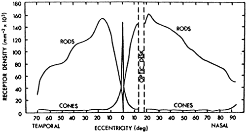 | CONE AND ROD DISTRIBUTION ACROSS THE HUMAN RETINA |