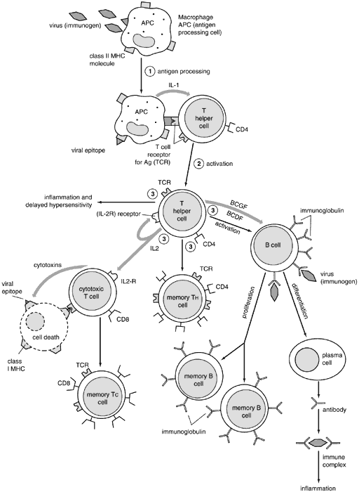 like an exogenous determinant on the larger carrier protein.1,3 The typical immune response is downregulated by a number of mechanisms and so wanes with time. The success of the immune response in eliminating its antigenic stimulus, the natural end-differentiation of lymphocytes into memory cells or short-lived cells, and feedback inhibition in the form of cytokine regulatory cascades and perhaps the development of anti-idiotypic antibodies all play a role in this self-regulation. Tolerance, or learned immunologic unresponsiveness, is discussed later. |