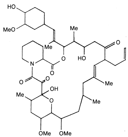 | FK506 is an immunosuppressive agent isolated from the broth of Streptomyces tsukubaensis with a mechanism of action similar to that of cyclosporine (Fig. 4).115,116 The drug binds to FK-binding protein, an immunophilin similar to cyclophilin. It