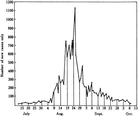 Cross-sectional surveys in the United States show that socioeconomic status is one of the most important determinants of ocular health.7,8 The relationship between income and infectious eye disease has been presumed but not proven. However, international comparisons suggest that economic development accounts for a substantial portion of infectious blindness. In developed nations, infections are the cause of approximately 1% of partially sighted people; in less developed regions, the burden of visual loss resulting from infectious diseases is much greater. Populations at particular risk of infectious visual disability are the poor, who live and work in unhygienic conditions. EMERGENCE OF OPHTHALMIC EPIDEMIOLOGY The discipline of epidemiology began with the study of epidemics, the increased frequency of a disease in a specified population within a given time. Epidemics of eye disease have been recognized since antiquity, often in association with the natural environment or war.9 A recognition of contagion, an understanding of ocular inflammation, and advances in mathematics were prerequisite to the development of ophthalmic epidemiology. Abrupt outbreaks, such as those typical of viral conjunctivitis, are easily noticed, but knowledge of endemic-level disease frequency is needed to recognize epidemics of less common or of slow-onset infections. Census statistics collected by many nations during the 19th century included blindness prevalence and, by the end of that century, of the causes of blinding ocular disease. For example, infectious diseases accounted for 72% and 85% of all causes of blindness in northern Europe in 1883 and 1902, respectively. By 1926, population-based data indicated that the percentage had decreased to 47%,10 partly because the proportion of blindness due to ophthalmia neonatorum dropped from 18% of all blindness in 1902 to 5% in 1926, a reduction largely attributed to Credé prophylaxis. Although the reasons for a decline in the relative importance of other infections are less obvious, they probably relate to improved sanitation after the Industrial Revolution. Infection remained a major contributor to blindness until the 1930s; after the end of World War II, the percentage of blindness due to infectious diseases declined dramatically in many parts of the world11 (Fig. 1). The first major effect of epidemiology on ocular infections occurred during the early bacteriologic era. Recognition that trachoma and other external eye infections were among the world's leading causes of blindness led to enormous public health efforts at their containment and eradication. In the late 19th and early 20th centuries, immigration services routinely screened for trachoma (Fig. 2), and it was a common reason for deportation. Throughout the 20th century, much effort was aimed at stopping trachoma's spread and limiting its complications. Increased prosperity reduced the incidence of trachoma in Europe and the United States, but chlamydial and other infections are still major contributors to blindness in Africa and Asia (Table 3).