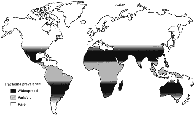 *Compiled from multiple sources using data from 1975 to 1995. Estimates, particularly for numbers of visually disabled individuals, are hampered by incomplete sampling, underreporting, variable diagnostic criteria, and other uncertainties, and are not a reliable guide to resource allocation. Incidence is expressed as the number of new detectable ocular infections per year. Prevalence is the estimated current number of people with active ocular infection or residual scar.
