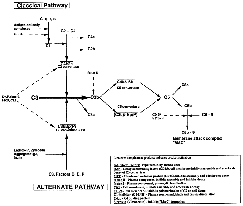 The immunologic defenses of the eye, although impressive, present a puzzling enigma: The eye is extremely vulnerable to inflammation. Therefore, the immunologic defense mechanisms described in this chapter can lead to potentially deleterious consequences for the optical clarity and bioelectrical functionality of the visual apparatus. It has been long recognized that the eye represents an immunologically privileged site. Decades of research by Streilein and others has revealed that the eye, like other immune privileged sites, possesses complex mechanisms capable of regulating inflammatory responses. Although ocular immune privilege is a dynamic, rather than passive, state mediated by soluble and cellular factors within the ocular microenvironment, a detailed discussion of this phenomenon is beyond the scope of this chapter.1,2,3 Immune privilege is mentioned in this introduction simply to remind the reader that the immunologic defense mechanisms described herein are also dynamic processes and are susceptible to both activation and suppression. |