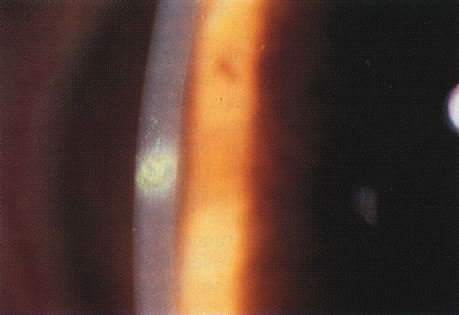of focal corneal inflammation as a response to the presence of organisms. However, this