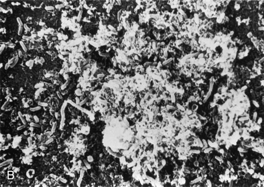 PATHOGENESIS OF MICROBIAL KERATITIS IN CONTACT LENS USERS The epidemiological studies described previously identified several factors that contribute to the pathogenesis of keratitis in CL users: overnight wear, soft lenses, poor hygiene compliance, and certain hygiene systems. However, epidemiologic studies themselves cannot determine the pathogenesis of disease. This section integrates the epidemiologic data with the clinical and laboratory investigations that have led to our current understanding of the pathogenesis of corneal invasion by bacteria and Acanthamoeba in CL users; the pathogenesis of inflammation and corneal destruction by these organisms is described in other chapters. Until recently, theories of the pathogenesis of MK in CL users were founded on two principal proposals. First, CL wear, particularly the use of EW SCLs, has extensive effects on the ocular surface129 that might be expected to compromise its resistance to microbial invasion.71,74,130 Second, some of these eyes are exposed to large numbers of bacteria that contaminate a high proportion of CL cases.131,132 The combination of increased susceptibility to infection and increased exposure therefore results in an increased risk of infection. Poor understanding of the pathogenesis of infection in CL users and of the mechanisms underlying these two proposals contributed to both the exacerbation and the perpetuation of the problem of MK in CL wear. An example of a solution is the introduction of extended wear, both reusable and disposable, as a means of reducing exposure to contaminated CL solutions. In addition, these proposals do not address the questions of why Pseudomonas and Acanthamoeba are more common than other organisms in CL users with keratitis, why there is no link between CL case contamination and keratitis in all patients with keratitis,3,133 and why RCL users are probably at a lower risk for keratitis than SCL users. Some of these observations have now been investigated, contributing to the development of a theory for the pathogenesis of MK in CL users. The following contributory factors must be addressed for both bacterial and amoebic keratitis: Source of the organisms BACTERIAL KERATITIS Source of Bacteria All of the organisms that commonly cause keratitis in CL users may be isolated from the ocular surface of normal individuals. These include S. aureus, Pseudomonas aeruginosa, and other coliform bacteria.134 These organisms derive from several sources. S. aureus is a widespread human pathogen that is frequently commensal in the nose. P. aeruginosa is a ubiquitous organism in our environment, common in soil, on vegetation, in water, and in the human gut and upper respiratory tract.135 It has also been found to contaminate cosmetics as well as CL care solutions.136 Studies of the conjunctival flora in CL users have shown no qualitative change in the short term, and the numbers of bacteria may be reduced compared to controls (see section on conjunctivitis). However, one study has related conjunctival cultures to contamination by gram-negative flora from contaminated CL cases.22 These have since been shown to be an important additional source of pathogens.136–139 The importance of contamination of CL cases in the pathogenesis of bacterial keratitis in CL users has been known for many years, and the expected link between CL case contamination and keratitis has been confirmed in some studies,131 although an association is not always present.133 CL case contamination probably results from a combination of poor hygiene pracitces and the failure of current disinfection systems in use. The role of the CL case may be to amplify the concentration of the environmental bacteria contaminating the case, thus providing a large inoculum of microorganisms presented to the eye by the CL. The discovery of the potential importance of the bacterial glycocalyx (described later), provides a theoretical mechanism whereby small numbers of bacteria from these environmental sources might be able to amplify in large numbers, both in the CL case and on the CL surface itself.137 The Role of Bacterial Adherence BACTERIAL ADHERENCE MECHANISMS. If the contact lens is to act as a vector for bacteria, these must at first adhere to the lens surface. This requires that the bacteria reach the surface, either by fluid or airborne mechanisms. Attraction or repulsion occurs due to the sum of the Van der Waals forces and the electrostatic forces. This is mainly a function of the distance of the bacteria from the surface. These interactions of total Gibbs energies are described by the Derjaguin-Landau and Verwey-Overbeek (DLVO) theory.140 The net result is usually repulsion, but temporary adhesion may occur. This can be broken by mechanical forces or bacterial mobility.141 For a surface bathed in fluid, such as a contact lens, these forces become dependent on the concentration of solutes in the solution. Repulsive electrostatic forces are less effective as ionic strength is increased. They are also influenced by the size of the bacteria and the surface hydrophobicity. Hydrophobic bonding has been shown to be important on many acellular surfaces, outweighing the effect of surface charge, and the degree of adherence may be related to it.142–144 Specific lectin-like bonding, probably mediated by adhesins on bacterial pili, is probably more important in mediating adherence at mucosal surfaces than at acellular surfaces,144 although corneal infection may be caused by non-piliated strains.145 However, lectin-like bonding may be an important factor on lens surfaces covered in ocular deposits, including mucin, which contains sialic acid to which specific Pseudomonas receptors have been demonstrated.146 BACTERIAL ADHERENCE TO CONTACT LENSES. Numerous studies have been carried out on bacterial adherence to contact lenses to explore the potential for adherent bacteria to cause keratitis. These studies have shown several inconsistencies. Both P. aerug