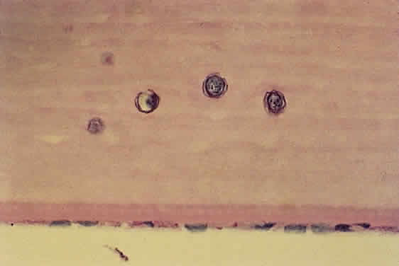Recently, tandem scanning confocal microscopy for in vivo identification of Acanthamoeba within the corneal epithelium and anterior stroma has been used successfully as an alternate rapid diagnostic method.121–123 Investigators employing this diagnostic technique have been able to visualize the highly reflective Acanthamoeba organisms in the corneal tissues of patients as well as animal models. The technique has also proved useful for following the course of the infection during and after therapy. |