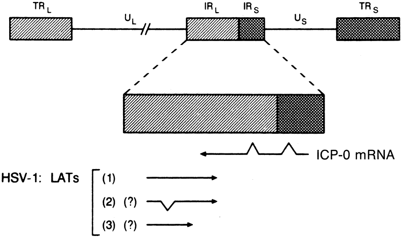 CLASSIFICATION Members of the family Herpesviridae are relatively large, enveloped, DNA-containing viruses. Eight human herpesviruses have been recognized to date and share the clinically important feature of producing a life-long latent infection in the host that is potentially recurrent. Of the eight human herpesviruses, HSV-1, HSV type 2 (HSV-2), and varicella-zoster virus (VZV) are neurotropic viruses that exhibit an affinity for nervous system tissues. Together, they are classified as alphaherpesviruses,4 a subfamily of viruses that exhibit a variable host range, relatively short reproductive cycle, rapid spread and efficient destruction of tissue culture cells, and the capacity to establish latent infections in sensory ganglia. VIRION STRUCTURE HSV-1 is a sphere with a diameter of approximately 180 nm5 (Fig. 1). Key components of the mature infectious virus particle (virion) include (1) an electron-dense core containing the viral genome in the form of a linear, double-stranded DNA; (2) a protein shell or capsid; (3) an amorphous tegument that surrounds the capsid; and (4) the envelope. The deoxyribonucleic acid (DNA) of HSV-1 has a molecular weight of approximately 100 × 106 and consists of about 150,000 base pairs.6 The DNA is contained in the virion core in the form of a torus that consists of a proteinaceous spindle. The DNA-containing toroid is suspended by fibrils embedded in the underside of the capsid, a 100-nm structure that exhibits icosahedral (20-sided) symmetry through the precise arrangement of 162 hollow capsomers (12 hexagonal and 150 pentagonal). The capsid (or nucleocapsid) serves to protect the genome and consists of a number of immunogenic virus-encoded structural proteins. The tegument is a term often used to describe the structure between the capsid and envelope. It has no distinctive features other than an amorphous fibrous appearance that exhibits variable thickness. The tegument is composed of several distinct virus-encoded proteins that function in early events of virus replication. These include the shut-off of host protein synthesis and the induction of early transcription of the virus genome. Surrounding the tegument and nucleocapsid is the envelope that is derived from the inner nuclear membrane of the host cell during the maturation process. The envelope is a host cell membrane that is modified by the insertion of at least 11 different virus-encoded glycoproteins, some of which serve as receptors to mediate entry of the virus into the host cell, cell-to-cell spread of virus infection, and stimulation of a host immune response including neutralizing antibodies.7 An intact envelope is an absolute requirement for HSV-1 infectivity. GENOME STRUCTURE The genome of HSV-1 possesses several unique structural characteristics. It consists of two covalently linked structural components, designated L (long) and S (short) (Fig. 2). Each component consists of unique sequences bracketed by inverted repeats that allows for rapid circularization of the DNA molecule when released from the capsid into the nuclei of infected cells.6 Circularization appears to be necessary for DNA replication and may be necessary for the establishment of latency. The L and S components can invert relative to one another to yield four equimolar linear isomers of which all are functional in the infected cell. At least 80 genes have been identified in the HSV-1 genome that encode for structural and nonstructural proteins, the latter being regulatory proteins and enzymes. The complete genome sequence for HSV-1 has been determined with the identification of individual protein coding sites.8,9 The functions of a significant number of HSV-1 genes and their protein products remain unclear. Endonuclease analysis of the HSV-1 genome has demonstrated the existence of thousands of strains of HSV-1 of which no two epidemiologically unrelated clinical isolates are identical.10 The “fingerprinting” of HSV-1 clinical isolates by DNA endonuclease cleavage patterns has proven helpful in tracing the transmission of individual virus strains from one person to the next and in identifying multiple isolates from a single patient. Individual HSV-1 strains produce distinct patterns of disease when compared at equivalent doses in experimental animals. Some HSV-1 strains selectively cause epithelial disease, stromal disease, or uveitis following ocular inoculation of mice.11–13 Other strains differ with respect to neurovirulence as measured by their ability to cause experimental encephalitis in mice.14,15 Experimental neurovirulence of HSV-1 has been correlated with the expression of a subset of virus genes16,17 that include the γ34.5 gene of the virus.18–20 The HSV-1 genome, therefore, appears to be a major determinant of viral virulence. EPIDEMIOLOGY HSV-1 is distributed worldwide1 and has been reported in developed and primitive societies including tribesmen of remote Brazilian villages.21 Because animal vectors for human HSV-1 infection have not been recognized, humans remain the only reservoir for transmission of the virus to other humans. Seroepidemiologic studies indicate an incidence of infection that generally increases with age and approaches 80% by age 60 years.22 This fact, coupled with the observations that HSV-1 infection is rarely fatal and that HSV-1 establishes a latent infection in the host, has lead to the conclusion that nearly one third of the world's population suffers from some form of recurrent HSV-1 infection.23 |