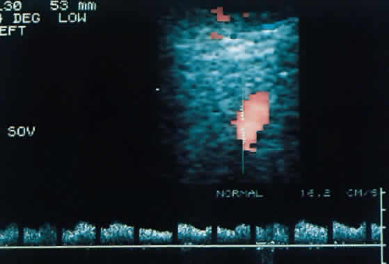 | Color Doppler imaging has been used to evaluate the eye and orbital blood