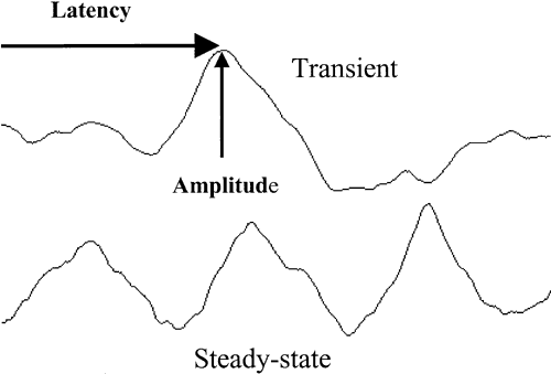 deflections, each with a measurable latency from the stimulus onset (Fig. 2). The second type of response, termed the steady-state VEP, is elicited