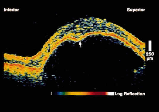 | Initial studies using postmortem eyes showed good correlation between OCT