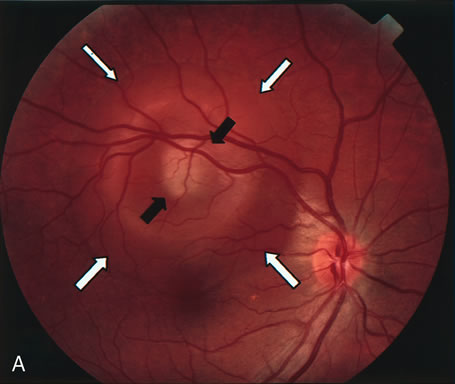 TREATMENT It is recommended to observe a stage 1 macular hole, since half of these will undergo spontaneous resolution. The treatment for stage-2 through stage-4 macular holes is surgical repair.231–238 The pseudohole itself is not visually disabling, but the condition may be clinically significant if there is considerable vitreoretinal traction such that the lesion threatens to develop into a full-thickness hole. FOLLOW-UP Just as the clinical findings of these conditions are most important for initial diagnosis and treatment, the findings on clinical examination guide long-term management. |