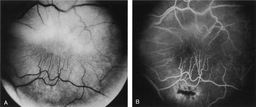 occurs within 3 to 6 months.273,274 FA does not reveal vascular leakage or abnormal retinal vasculature, but