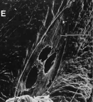 that results in reestablishment of functional ocular anatomy.1–3 The goal of therapeutic intervention in the setting of ocular trauma is to promote the repair process and to allow it to proceed as rapidly as possible and heal as completely as possible without compromising ocular function.4 CELLULAR AND EXTRACELLULAR COMPONENTS The four basic cell types found in wound healing are fibroblasts, vascular endothelial cells, inflammatory cells, and epithelial cells. Specialized cell types that participate in ocular wound healing include corneal endothelial cells, retinal pigment epithelial cells, and Müller cells of the retina. Specific cell populations enter an area of injury under the influence of complex biochemical and biophysical processes involving proteins of the extracellular matrix and the coagulation system. Intracellular proteins, such as tubulin and actin, andmyosin filaments function in cell locomotion. Extracellular matrix proteins, such as fibronectin, laminin, and type IV collagen, orient and regulate cell migration and adhesion.5 Coagulation proteins, such as von Willebrand's factor and plasminogen, alsofunction in regulating the cellular events of healing. Vascular endothelial cells are stimulated to leave their resting state and digest basement membrane, proliferate, migrate, and eventually differentiate under the direction of multiple angiogenic growth factors.6 A wound usually is filled first by a fibrin coagulum. Neutrophils, lymphocytes, and histiocytes (macrophages) enter the wound through fibrin scaffolding to clear necrotic debris and confine toxic or foreign substances. Granulation tissue often is the first type of reparative tissue in wound healing (Fig. 1). Although its composition varies somewhat, small-caliber vascular channels in a delicate collagenous stroma infiltrated by acute and chronic inflammatory cells generally characterize it. This amorphous tissue serves as a template for more definitive repair. Metaplasia is the transformation of a cell from one adult cell phenotype to a second cell phenotype. In advanced wound healing, fibroblasts acquire intracytoplasmic characteristics of smooth muscle cells (myofibroblasts).7 The myofibroblasts are able to contract and bring wound edges together. Vascular endothelial cells proliferate and migrate into the wound from preexisting adjacent vessels. The new “vessel” migrates initially as a solid bulb of endothelial cells. This solid cord of cells will canalize and differentiate into mature arterioles, venules, and capillaries. Fibroblasts grow into the wound in a radial manner but will eventually reorient and secrete collagen along lines of established tissue tension. Epithelial cells are found covering surfaces of tissue. Two distinct types of epithelial cells cover the ocular surface: corneal epithelial cells and conjunctival epithelial cells. Cell replacement is accomplished by stem cells located at the limbus for the corneal epithelium8,9 and at the mucocutaneous junction and possibly throughout the conjunctiva for the conjunctival epithelium.10 Migration and proliferation of surrounding healthy epithelial cells heal surface discontinuity. Apoptosis is a biochemical process leading to programmed cell death. Cell death in apoptosis results from intracellular messages. In necrosis, cell death results from toxic external factors (e.g., hyperosmolality). Apoptosis allows for elimination of entire populations of cells without tissue damage or an inflammatory response.11 Elimination of certain cells is advantageous in embryology (e.g., when scaffolding structures are no longer necessary as with the primary vitreous). In certain neoplastic conditions, however, defects in apoptosis may lead to disadvantageous accumulation of cells. Apoptosis also seems to be highly influential in all types of inflammation, including wound healing. In wound healing, apoptosis may function to control the type and degree of tissue response.12 In the anterior cornea, keratocytes have been observed to undergo apoptosis in response to wounding of the cornea.13,14 Abnormalities of apoptosis may be responsible for such conditions as keloid formation in the skin15 and keratoconus in the cornea.16 Wound healing of highly specialized tissues of the eye has several unique features. CORNEAL HEALING The healing of the cornea is unique relative to other soft tissues, because it lacks blood vessels and because it is lined anteriorly and posteriorly by layers of epithelial-like cells. Epithelial cells of the corneacan produce essential wound healing factors normally produced by platelets.17 Architectural repair is accomplished at the level of the corneal stroma. Abrasions are injuries generally involving only the superficial layer (epithelium) of the cornea (Fig. 2). Abrasions are commonly caused by mechanical injuries or anoxia resulting from contact lens overwear. Some or all of the layers of the surface epithelium are lost, but Bowman's membrane remains intact. After a delay of approximately 1 hour, uninjured epithelial cells at the margin of the wound loosen their intercellular and basal attachments and migrate en masse toward the injured area.18 The shape of the wound margin and the biochemical characteristics of the exposed tissue influence the direction and extent of the migration.19 If the entire corneal epithelium is abraded, migrating epithelial cells derived from the limbal stem cells are able to cover the defect completely within 48 to 72 hours. The epithelium will be much thinner than normal until mitotic division reestablishes normal thickness. Re-formation of epithelial basement membrane may not be detectable for as long as 6 weeks after injury.20 Clinically, the healed wound is transparent. Small defects of Bowman's membrane (Fig. 3) do not heal by fibrous proliferation of the stroma. The defect is filled by proliferating epithelial cells (epithelial facet formation) that reestablish the surface continuity of the cornea. The facet 