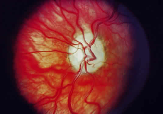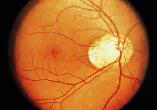 Prelaminar disease (e.g., hypotony secondary to trauma or uveitis, acute angle closure and vascular disease) that is local or systemic may also be accompanied by a swollen disc head. Venous stasis, retinopathy, and hypertensive retinopathy are other frequent causes. Microscopically, the earliest changes consist of a transudate in and between the axons, with accumulation of mitochondria. As a result, the nonmyelinated axons are separated and there is an anterior bowing of the lamina cribrosa. The optic cup appears shallow and the sensory retina is displaced laterally, so that the blind spot is enlarged. The vessels are congested, particularly the veins. Any hemorrhages that occur are predominantly in the nerve-fiber layer around the disc margin. Edema fluid may accumulate in the subarachnoid space of the optic nerve. Persistence of an edematous disc is accompanied by the appearance of cotton-wool spots and eventually atrophy of the axons. Loss of axons and myelin leads to proliferation of astrocytes or gliosis. Optic neuropathy is a general term that is applied to optic nerve dysfunction. It may be caused by a variety of conditions such as ischemia (e.g., giant cell arteritis, compression by tumor); metabolic diseases (e.g., diabetes mellitus); drug toxicity (e.g., chloramphenicol); and vitamin deficiencies (e.g., B12 deficiency). Inflammation of the optic nerve may be secondary to bacterial and mycotic infections of adjacent anatomic structures (eye, sinus), or it may occur as a part of a systemic infection, particularly in an immunosuppressed patient (Fig. 23). Clinically, there is unilateral acute blurred vision, with pain or discomfort on movement or palpation of the globe. On examination, visual acuity with a central scotoma is decreased to colored objects but the disc appears normal. Classification depends on ophthalmoscopy topography (Table 1).