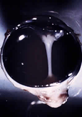 A coloboma, which is due to a failure of fusion, is confined to the disc or involves the entire embryonic fissure (Fig. 16). It is usually unilateral and varies in its appearance from a deep physiologic cup to a large hole with a retrobulbar cyst. Other ocular anomalies (e.g., microphthalmos with cyst) may be associated. The wall of the defect may contain adipose tissue and occasionally muscle fibers. The latter may lead to a contractile peripapillary staphyloma. Vascular anomalies stem from a failure of the hyaloid vessel to regress completely or partially. Such anomalies include a Bergmeister's papilla (Fig. 17), persistent hyperplastic primary vitreous (Fig. 18), anomalous distribution of central retinal vessels, epipapillary vascular loops, abnormal chorioretinal anastomosis, and epipapillary membranes.