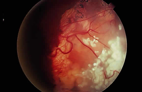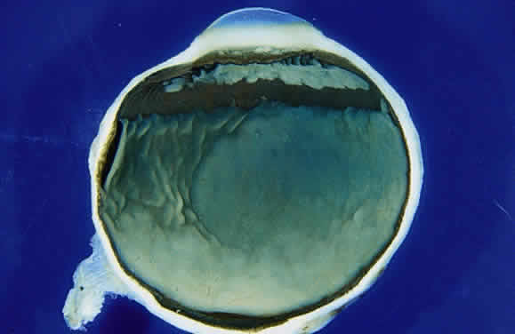 part or all of the retina, and may totally fill the vitreous cavity. The
