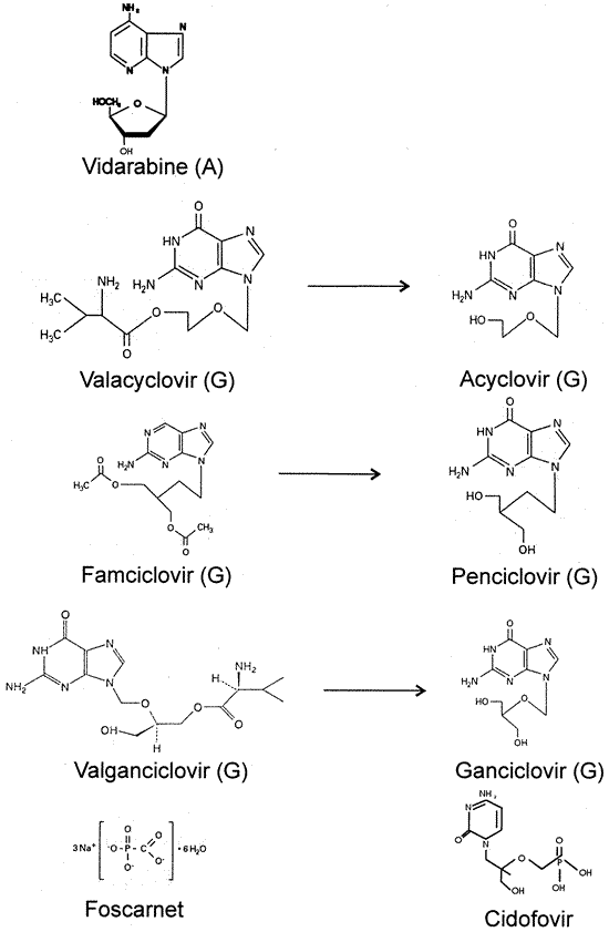 IDOXURIDINE TRIFLURIDINE VIDARABINE ACYCLOVIR VALACYCLOVIR FAMCICLOVIR/PENCICLOVIR GANCICLOVIR VALGANCICLOVIR FOSCARNET CIDOFOVIR FOMIVIRSEN HAART FOR HIV DISEASE INVESTIGATIONAL AGENTS REFERENCES |