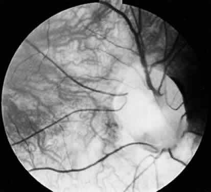 is the rosette, several types of which have been described.78 Rosette formation may result from the exaggeration of the normal developmental process, which causes an overgrowth of the cells of the inner layer of the optic cup during closure of the embryonic fissure.79 Mann2 observed that retinal dysplasia could be produced by exposure to x-rays during the period of active differentiation of the inner layer of the optic cup. Orderly retinal morphogenesis may depend on the organizing influence of the adjacent pigment epithelium. When this layer is lacking, the neurosensory retina may be disorganized.80 Reese and co-workers81,82 applied the term retinal dysplasia to a specific syndrome consisting of bilateral retinal defects and other ocular defects associated with multiple systemic anomalies. This description, however, appeared before chromosomal analysis was available, and many of the cases that they described may have actually been examples of trisomy 13.83–85 Retinal dysplasia has also been associated with cyclopia, Norrie's disease, congenital progressive oculoacousticocerebral degeneration (inherited as a sex-linked recessive), chromosome 18 deletion defect, retinoblastoma, and persistent hyperplastic primary vitreous (PHPV).54,86–88 As the syndromes that are associated with retinal dysplasia become better known, this term will eventually become a purely histologic description, rather than a clinical entity. |