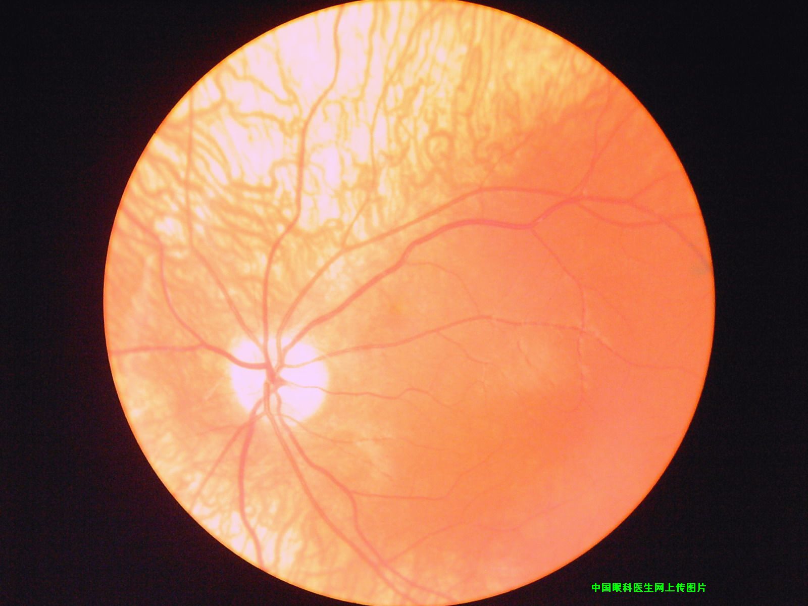 患儿,女,3岁,於2006414来我院求诊。其母诉患儿自小畏光,患儿系第一胎足月平产,否认有宫内窒息史及产后窒息史,生长发育与同龄儿相仿。母亲怀孕期间体健,父母均健康,否认近亲婚配史,否认家族中类似病史。体查:患儿营养中等,发育正常,全身皮肤、毛发色泽正常,四肢、指趾未见异常,心、肺(—)。眼部检查:双眼球呈粗而缓慢的钟摆性水平型眼球震颤,无快慢相之分,双眼屈光间质清,虹膜棕色,纹理清晰,双瞳孔等大等圆约3.5mm,光反射(+)。予以美多丽滴眼液扩瞳后行眼底检查:患儿双眼底呈橙红色,视盘大小正常,色淡粉,边界稍模糊,视网膜色素缺如,视网膜血管及呈网状分布的脉络膜血管一览无遗,双黄斑发育不良,中心凹反光未见(如照片示)。因患儿查体欠合作,视力、验光、视觉电生理等检查未能完成。